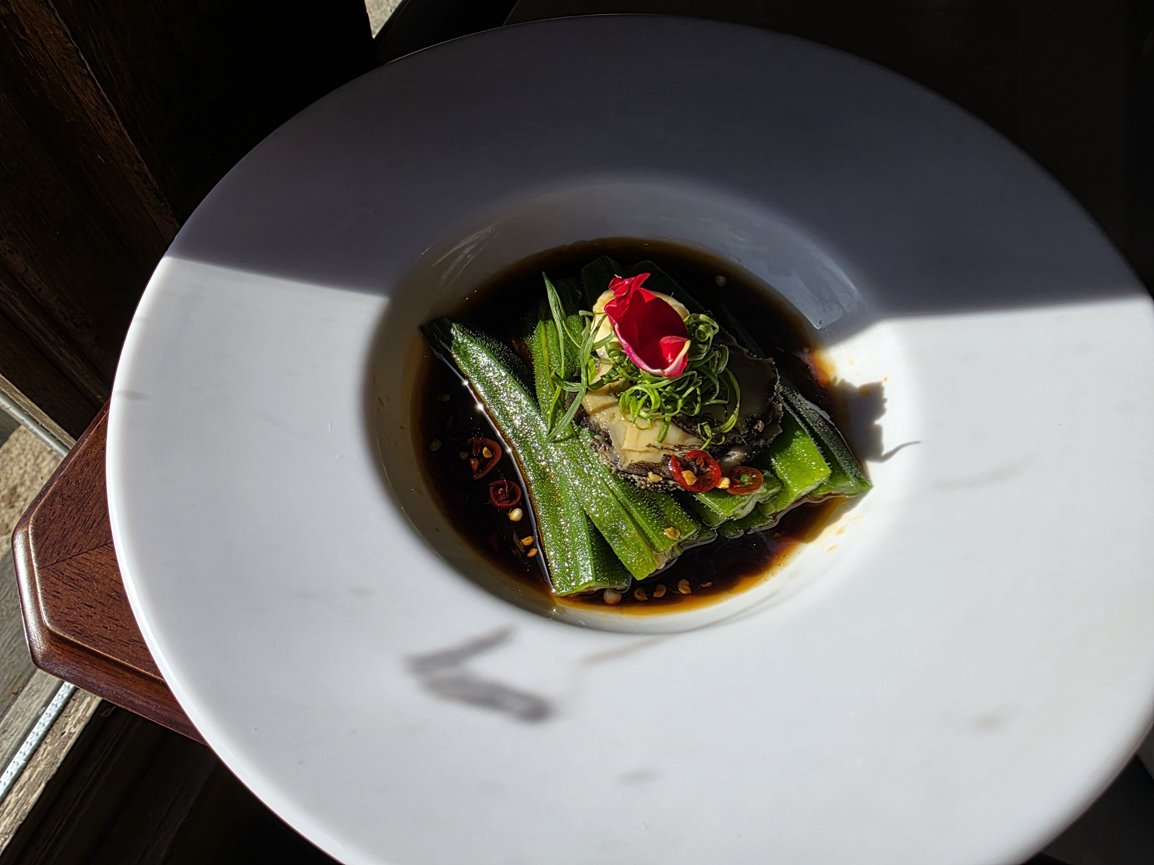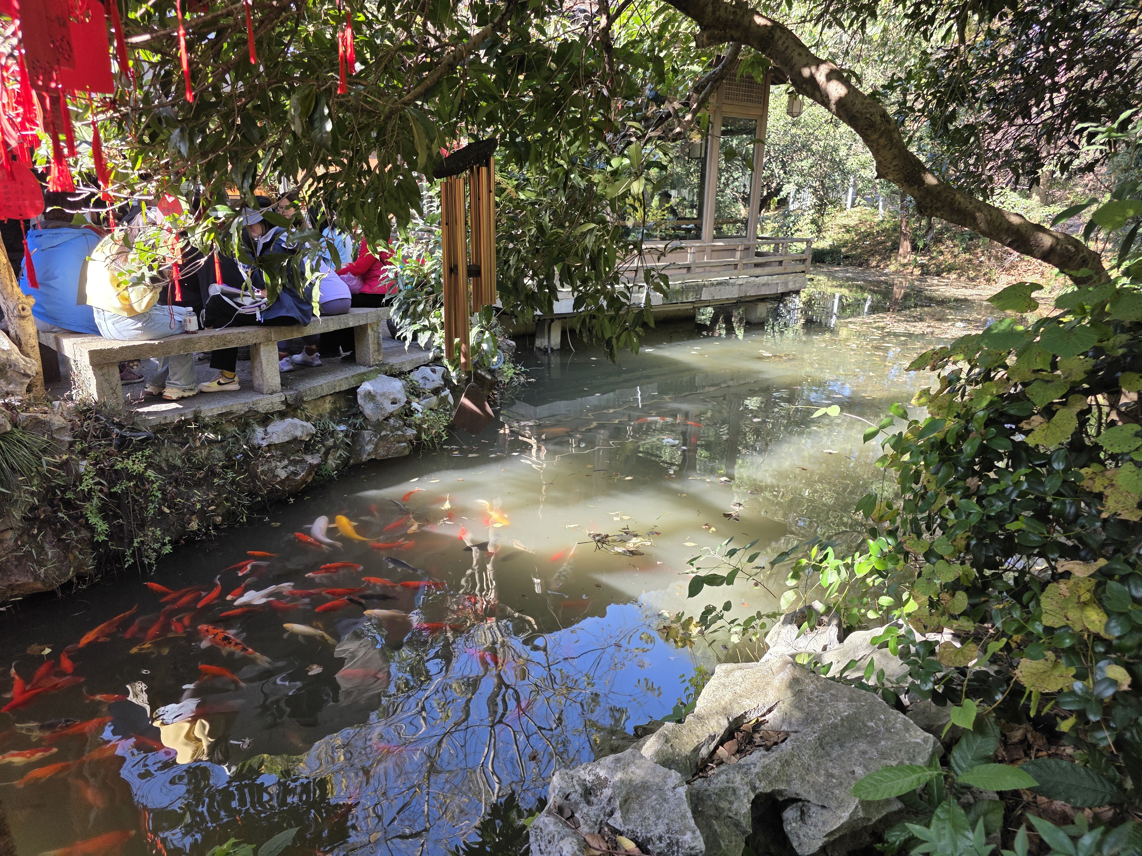 We waited about 30 minutes for a table and were seated by a pond. The view was the best part of the meal.