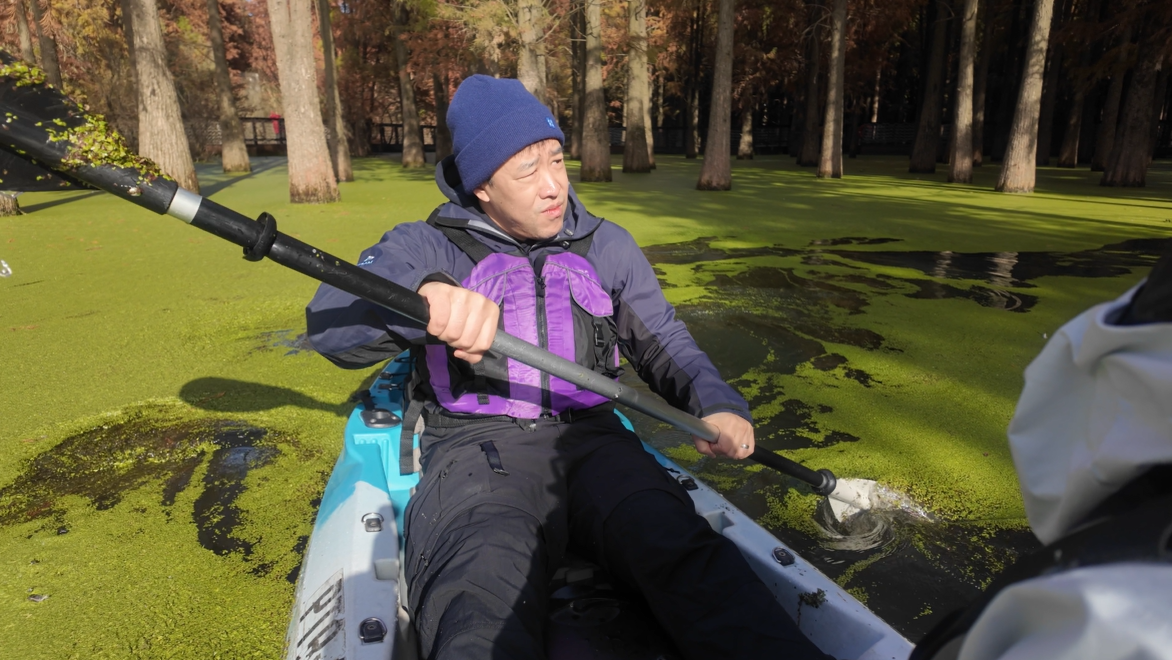 I first saw Qingshan Green Lake online and honestly thought it looked fake. The lake is covered in duckweed, giving it a deep green, almost matcha-colored surface that looks unreal in photos.